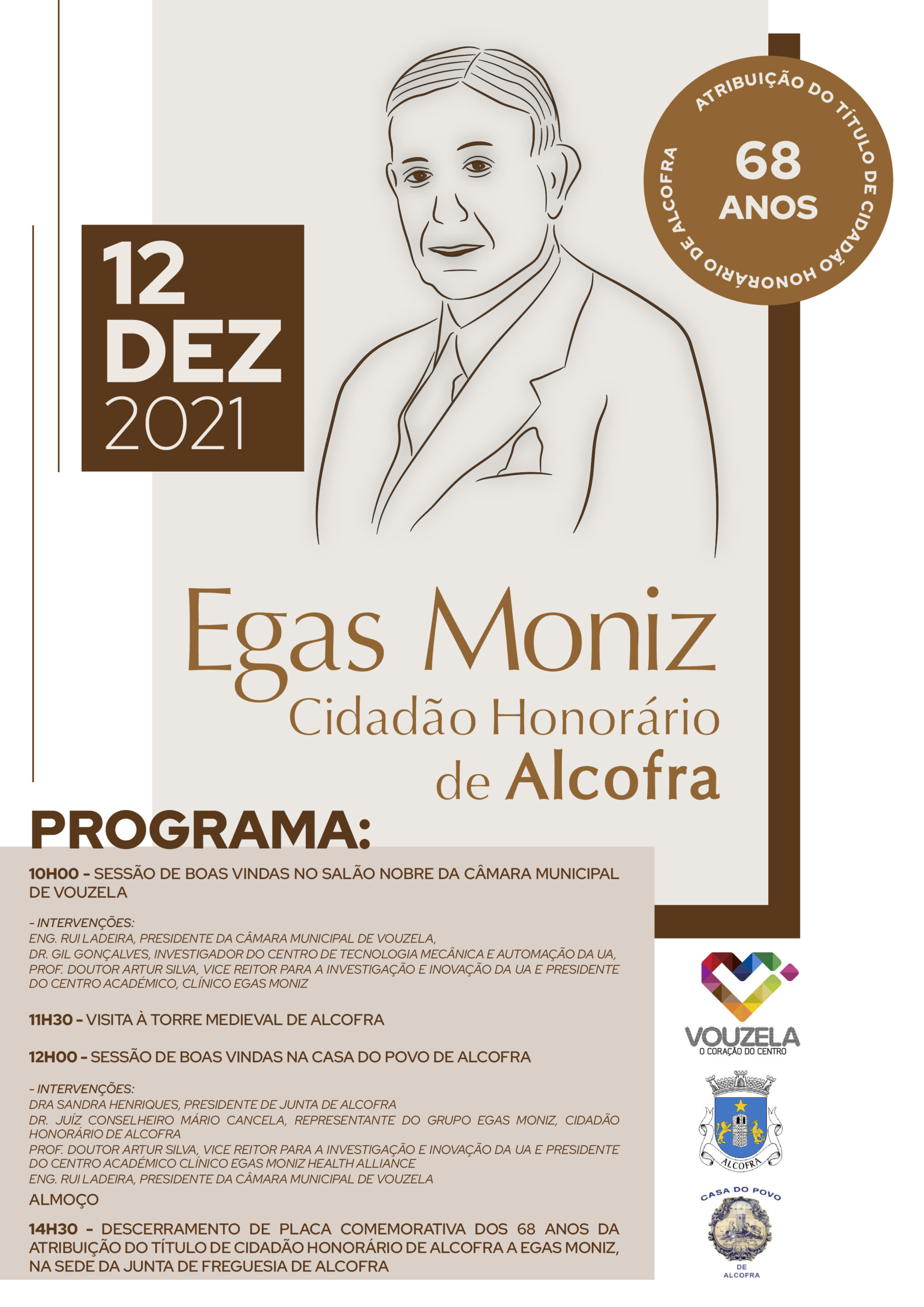 A Casa do Povo de Alcofra e a Junta de Freguesia de Alcofra, em parceria com a Câmara Municipal de Vouzela, vão assinalar os 68 anos da atribuição do título de cidadão honorário de Alcofra a Egas Moniz.