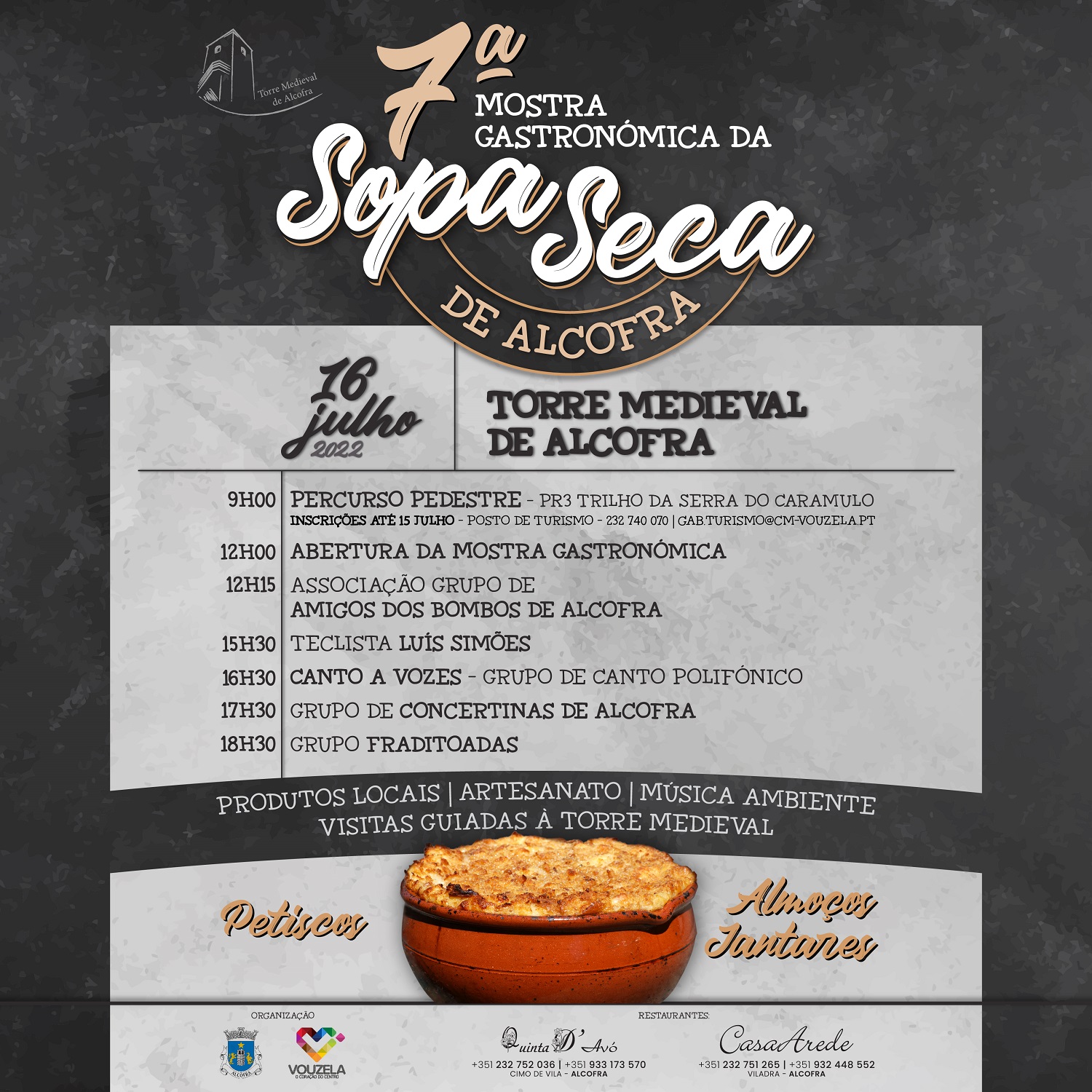 A 7ª Mostra Gastronómica da Sopa Seca de Alcofra é promovida pela Junta de Freguesia de Alcofra e pela Câmara Municipal de Vouzela.