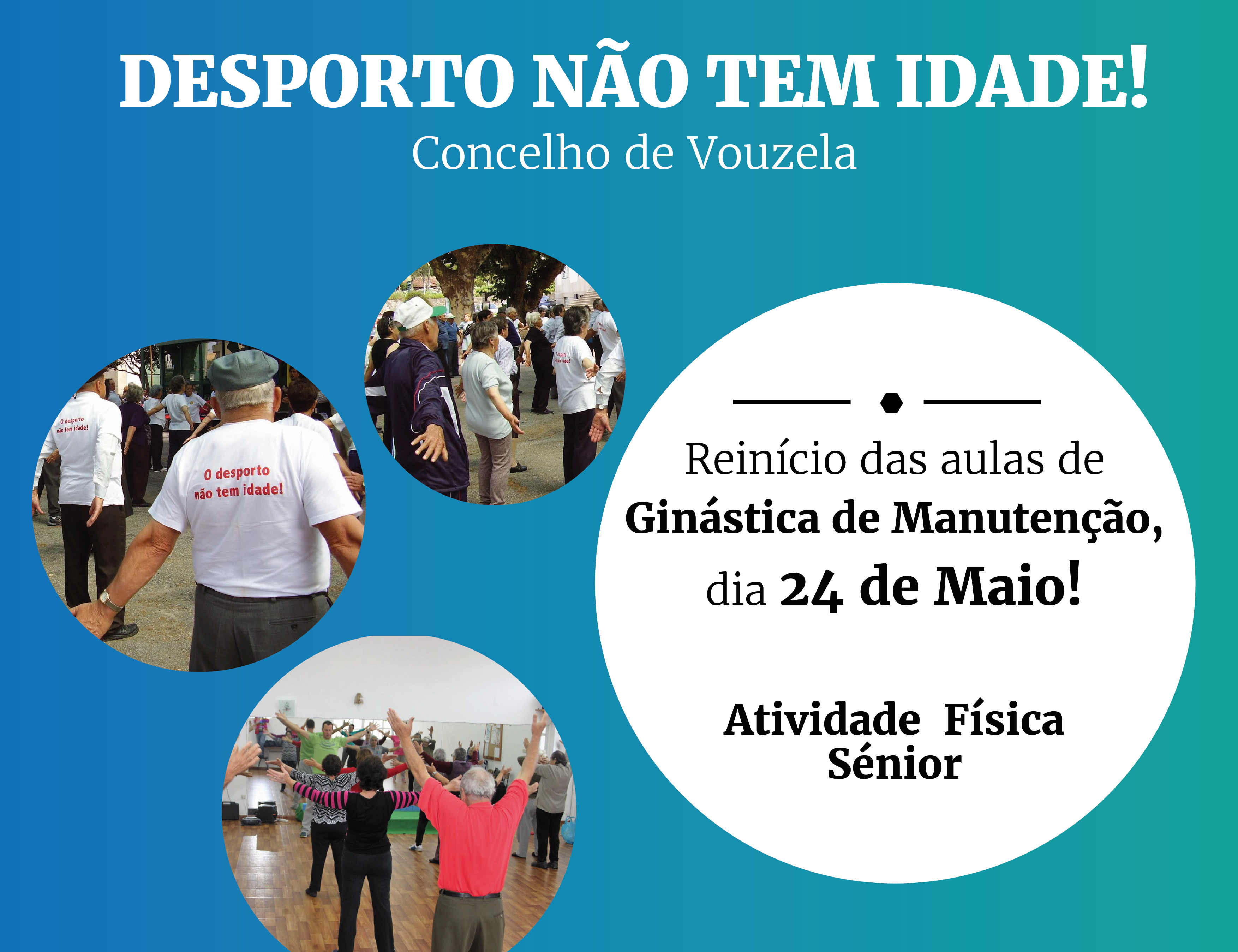 No âmbito do projeto “Desporto não tem Idade”, a Câmara Municipal de Vouzela vai retomar as aulas de ginástica de manutenção a partir do dia 24 de maio, depois da paragem imposta pela pandemia.