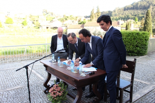 O Presidente da Câmara Municipal de Vouzela, Rui Ladeira, e o Vogal do Conselho Diretivo da Turismo de Portugal, Carlos Abade, assinaram na passada sexta-feira, dia 18 de maio, o contrato de financiamento para a construção da Ecopista do Vouga – troço de Vouzela. Com uma extensão de 7km, o projeto tem um custo de 676.899 euros, sendo financiado em