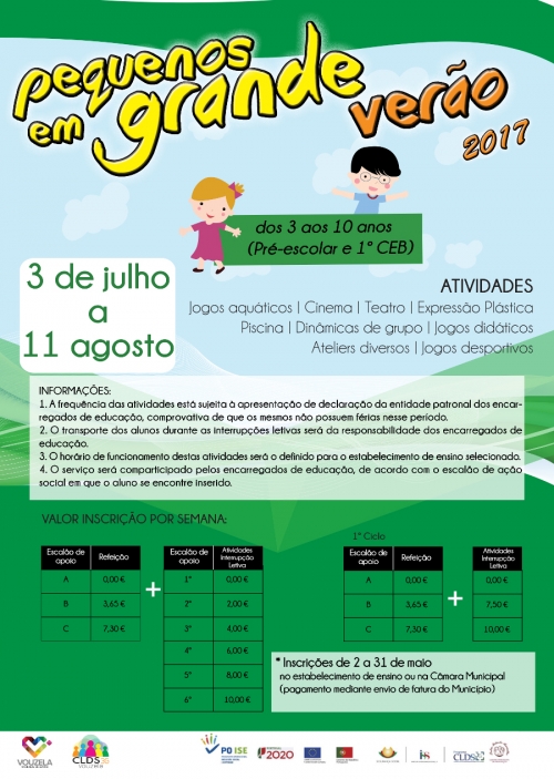 A Câmara Municipal de Vouzela e o CLDS 3G vão promover mais um programa Férias Desportivas e Culturais destinado a crianças e jovens com idades compreendidas entre os 3 e os 14 anos. Para este ano, a oferta do município centra-se nos projetos “Pequenos em grande” e “Uma Semana em Cheio”. O “Pequenos em Grande” realiza-se entre 3 de julho