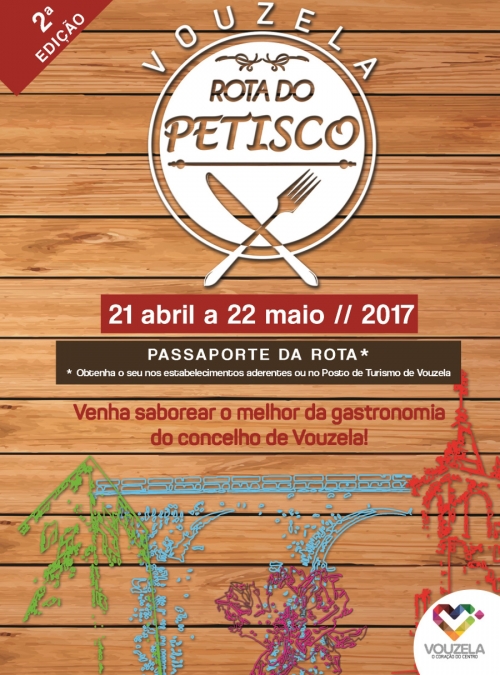 O Município de Vouzela vai promover, de 21 de abril a 22 de maio, a segunda edição da rota do petisco. Durante quatro semanas, 13 restaurantes e snack bares do concelho vão proporcionar aos visitantes a oportunidade de saborearem alguns dos melhores petiscos da região. Enchidos, rojões, moelas, petinga frita, pica pau e cogumelos ao alho são algumas das iguarias