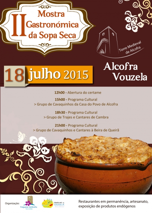 Depois do sucesso da 1.ª edição, a Junta de Freguesia de Alcofra e o Município de Vouzela vão promover, no dia 18 de julho, junto à Torre Medieval de Alcofra, a II Mostra Gastronómica da Sopa Seca. O evento pretende promover e valorizar aquele que é um dos principais ex-libris gastronómicos daquela freguesia e do concelho, a sopa seca de