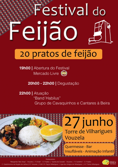A Associação Pa(ç)ssos para a Torre de Vilharigues, com a colaboração do Município de Vouzela, vai promover no próximo dia 27 de junho, a 3.ª edição do Festival do Feijão, que tem como objetivo dinamizar o espaço envolvente da Torre Medieval de Vilharigues e promover a gastronomia da região. No certame, a iguaria dominante será o feijão, estando prevista a