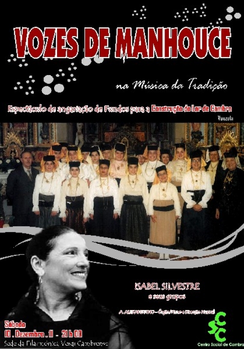O Centro Social de Cambra promove no dia 10 de Dezembro, sábado, pelas 21h, na sede da Filarmónica Verdi Cambrense, em Cambra, um espectáculo de angariação de fundos para a construção do Lar de Idosos daquela freguesia do concelho de Vouzela. O espectáculo “Vozes de Manhouce – na Música da Tradição” contará com a presença de Isabel Silvestre e seus