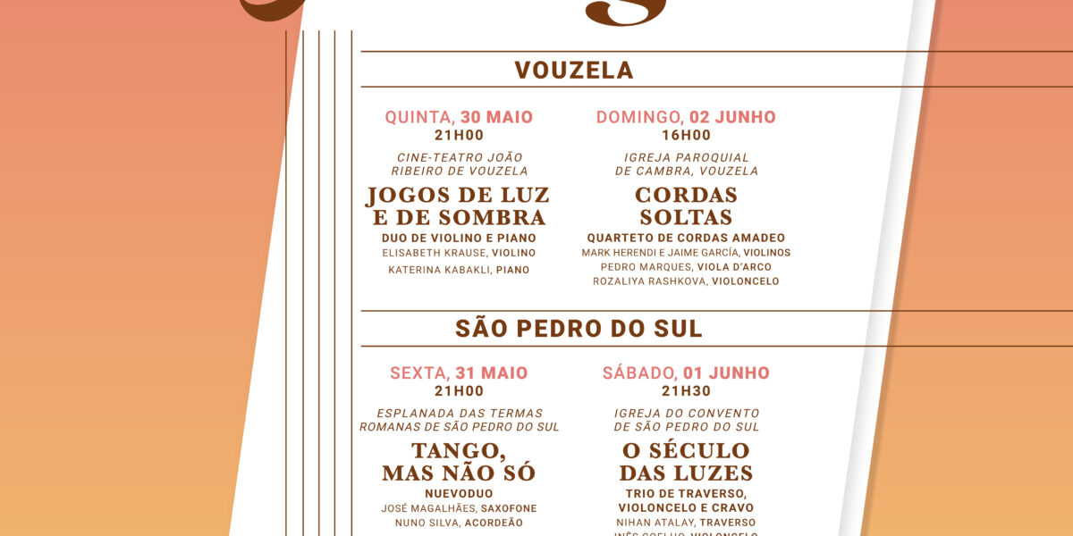 Os concelhos de Vouzela e São Pedro do Sul vão receber a terceira edição do Festival de Música “Allegro, entre os dias 30 de maio e 2 de junho. O evento tem entrada livre e conta com vários momentos musicais. Em Vouzela, o festival acontece no dia 30 de maio, no cineteatro João Ribeiro, pelas 21h00, com o concerto “Jogos