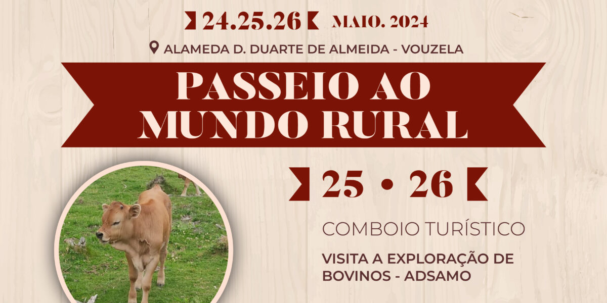 No âmbito do Festival Gastronómico da Vitela de Lafões, vai realizar-se, nos dias 25 e 26 de maio, um “Passeio ao Mundo Rural”, em comboio turístico, com visita a uma exploração pecuária na aldeia de Adsamo, em Ventosa, e degustação de produtos locais. As inscrições são limitadas e decorrem até ao dia 23 de maio. Os interessados podem inscrever-se junto