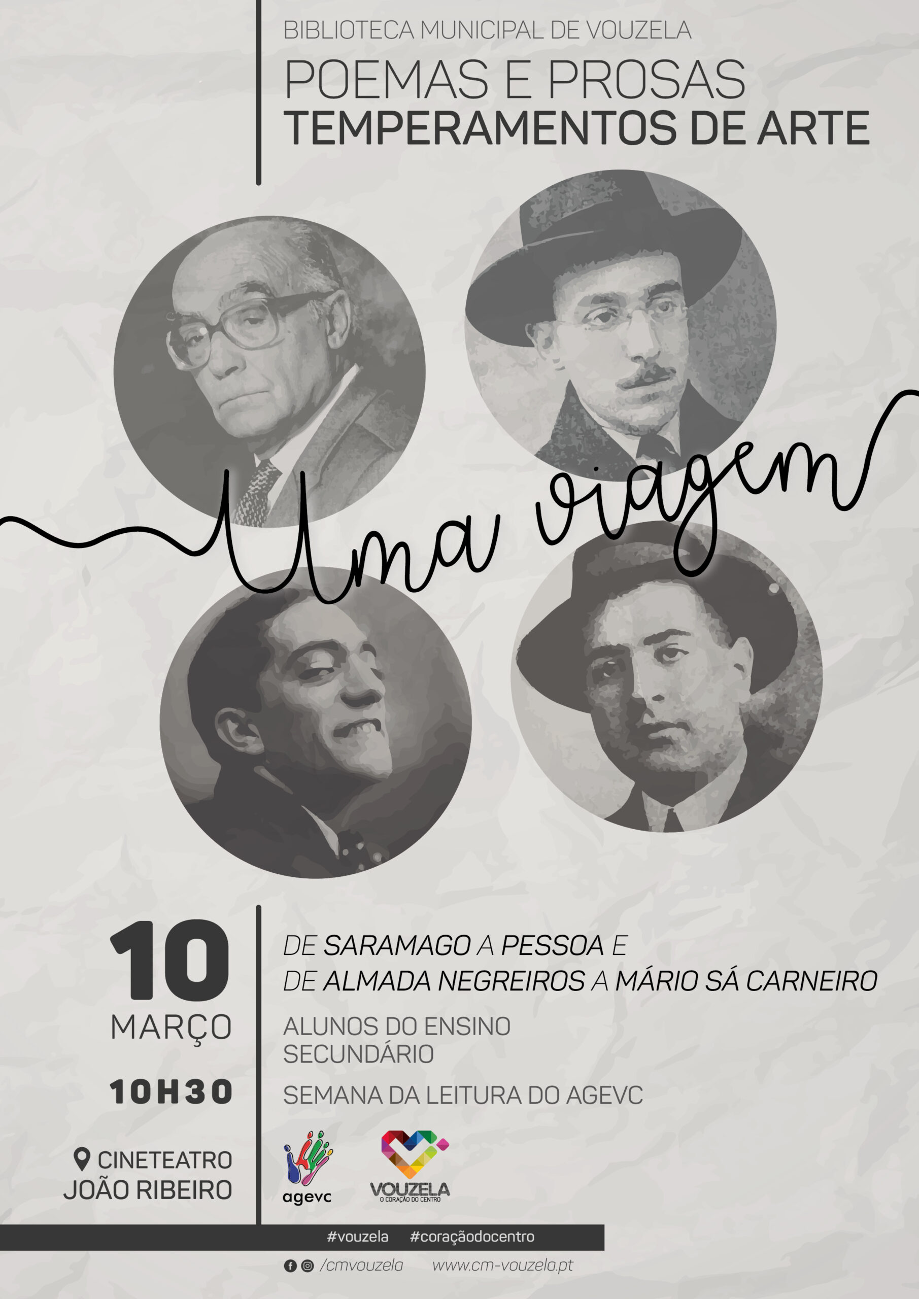 “Poemas e Prosas – Temperamentos de Arte” é o nome da viagem pela obra de quatro escritores portugueses que a Biblioteca Municipal de Vouzela propõe para assinalar a Semana da Leitura do Agrupamento de Escolas de Vouzela e Campia (AGEVC).