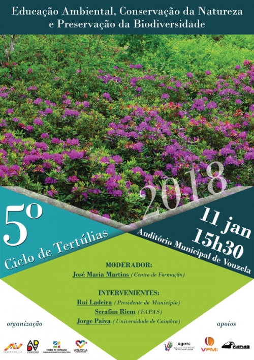 A primeira iniciativa do ano e deste quinto ciclo realiza-se já no próximo dia 11 de janeiro, pelas 15h30, no Auditório Municipal de Vouzela, e é subordinada ao tema “Educação Ambiental, Conservação da Natureza e Preservação da Biodiversidade”.