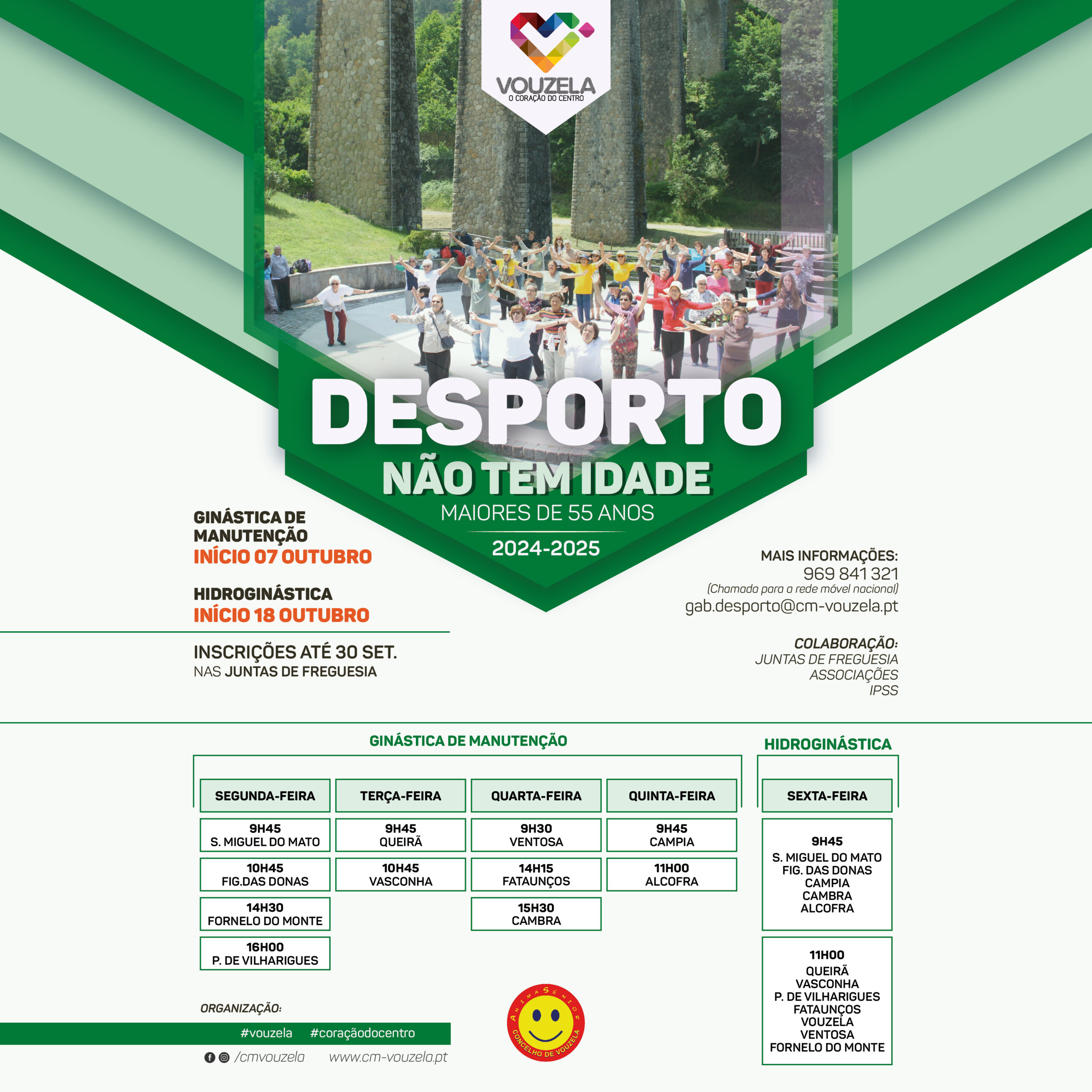 O projeto “Desporto não tem Idade” é uma iniciativa do Município de Vouzela e que conta com o apoio das Juntas de Freguesia, das Associações e das IPSS do concelho.