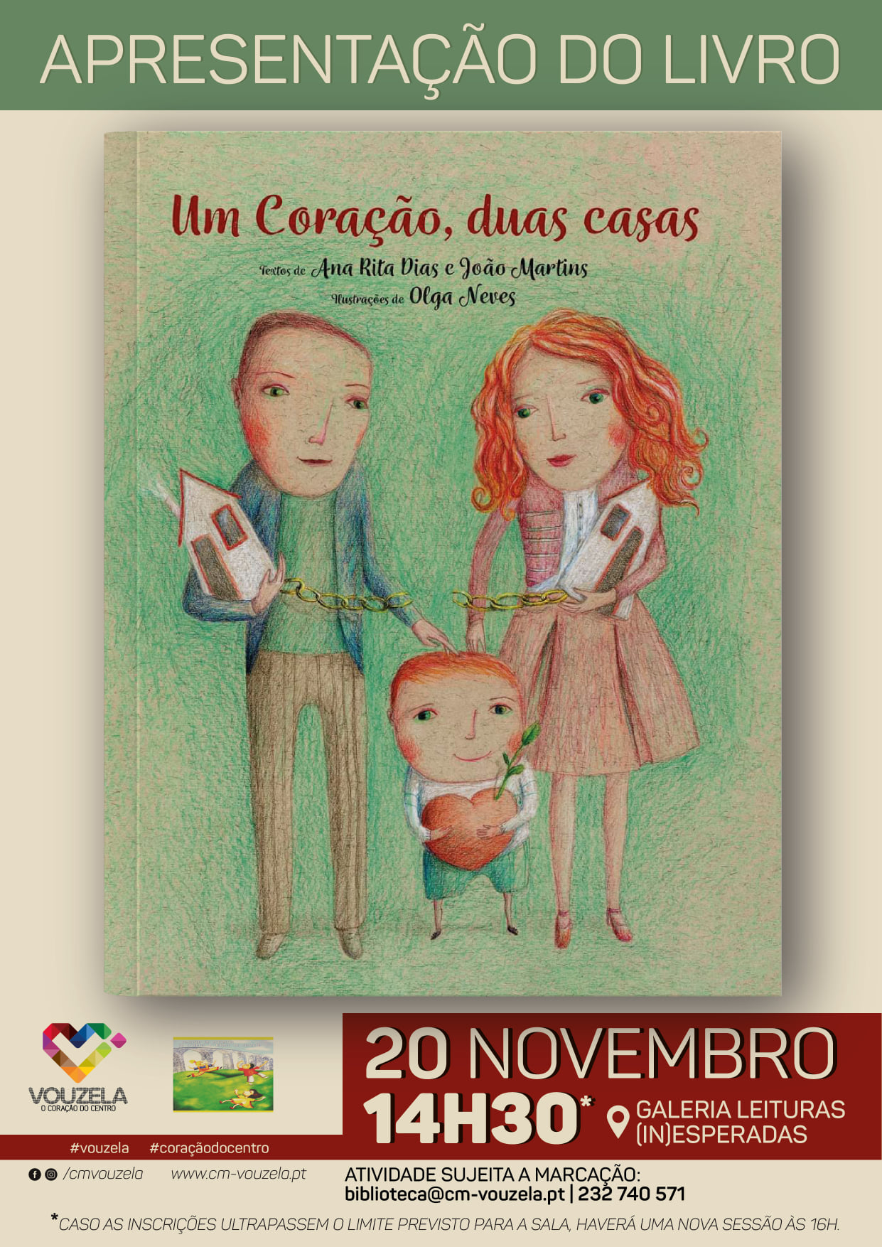 A Câmara Municipal de Vouzela e a Comissão de Proteção de Crianças e Jovens em Risco (CPCJ) vão promover a apresentação do livro “Um Coração, Duas Casas”, dos autores João Martins e Ana Rita Dias.