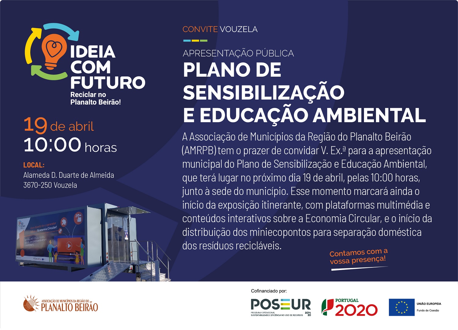 No âmbito do plano de sensibilização e educação ambiental da Associação de Municípios da Região do Planalto Beirão (AMRPB), Vouzela vai receber no dia 19 de abril, pelas 10h, na Alameda D. Duarte de Almeida, uma exposição itinerante sobre economia circular e dar início à distribuição de mini-ecopontos destinados à população de Vouzela para separação doméstica de resíduos recicláveis.