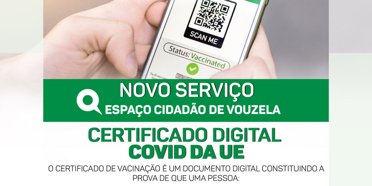Foi, recentemente, disponibilizado no Espaço Cidadão de Vouzela o “Certificado Digital COVID”. Este certificado é um documento digital, emitido em português e em inglês, que constitui a prova de que uma pessoa: – foi vacinada contra a COVID-19 – recebeu um resultado negativo num teste, OU – recuperou da COVID-19 Para mais informações ou esclarecimentos, contacte o Espaço Cidadão de