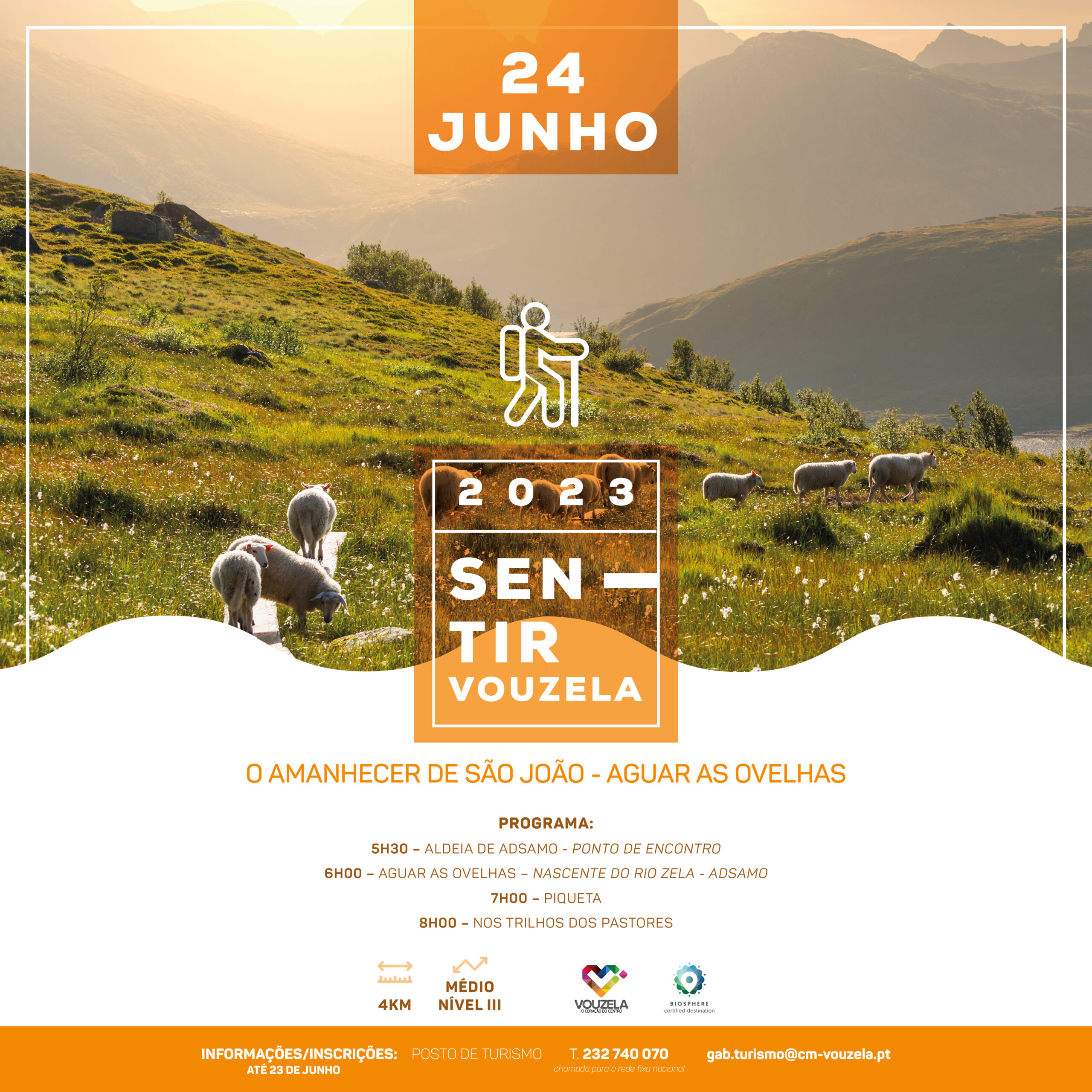 No âmbito do calendário de percursos pedestres “Sentir Vouzela”, a Câmara Municipal vai promover, no próximo sábado, dia 24 de junho, mais um percurso pedestre, desta vez, na freguesia de Ventosa e com o tema “Amanhecer de São João – Aguar as Ovelhas”.